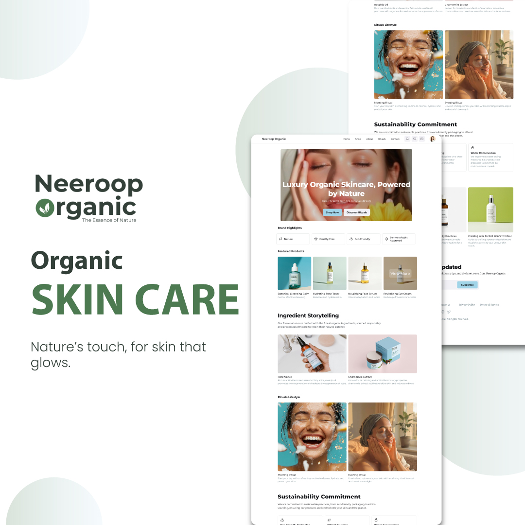 Neeroop Organic sought a brand and website that conveyed modern luxury and sustainability. The challenge was to balance indulgence with trust and create a digital flow that tells ingredient stories, rituals, and values with clarity and grace.