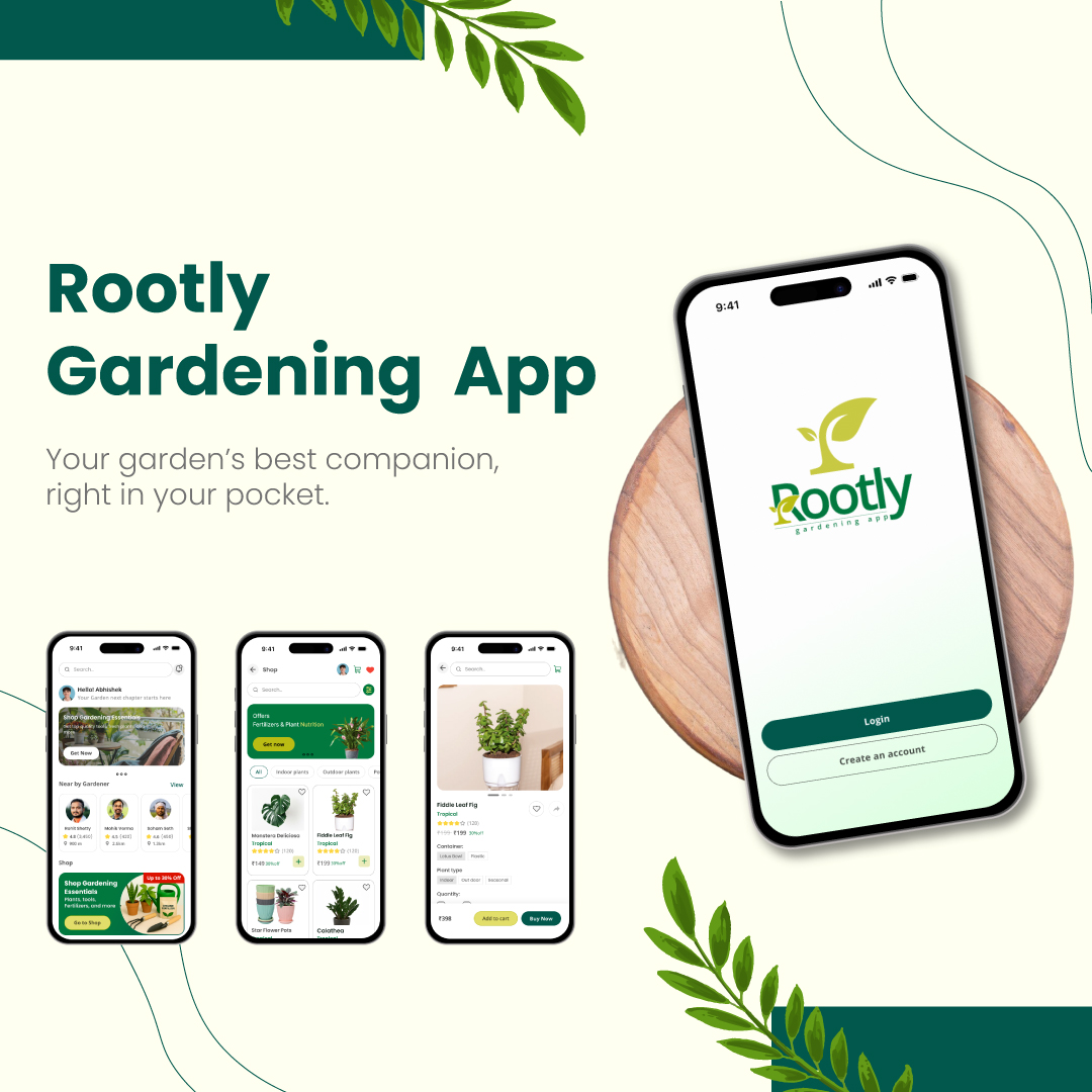 Rootly approached us to design a brand identity and app interface to help urban gardeners grow with confidence. They needed a nature-inspired solution that simplified plant care and felt trustworthy, user-friendly, and credible, both visually and functionally.