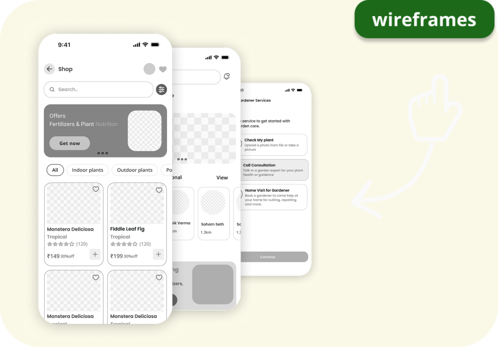 I delivered a clean, nature-inspired brand identity and intuitive UI design for the gardening app. Beyond the brief, I introduced photo-clicking for plant identification and a community feature, making the experience engaging, educational, and eco-conscious.