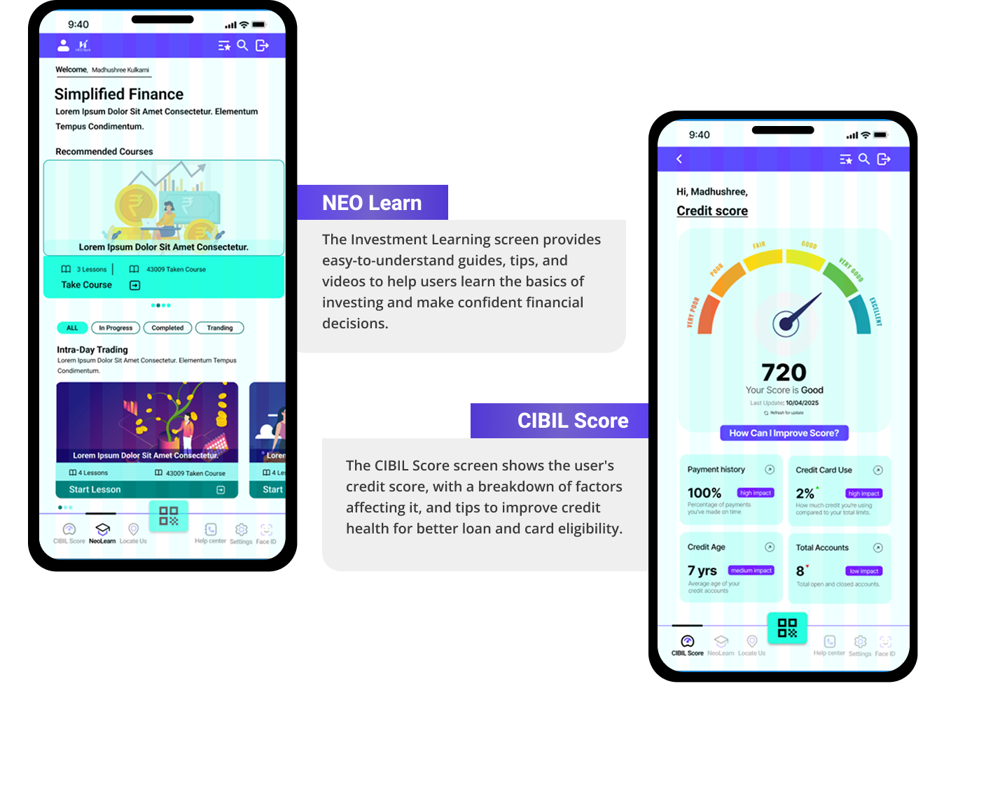 Delivered 50+ polished screens with AI-assist, multilingual support, investment learning, and accessible flows.